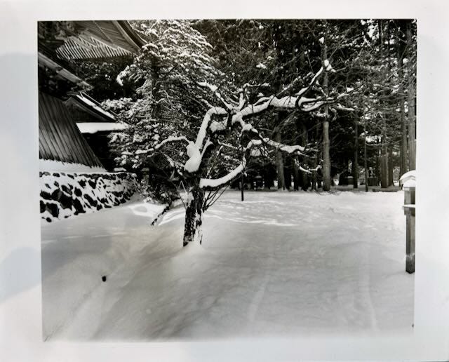 For practice I chose the most difficult negatives I have ever made: four rolls of 6×7 black-and-white shot at Mt Kōyasan, Japan, in the dead of winter. Three feet of snow, ancient forests, cedar monuments — a tonal range stretched across fourteen stops of light.